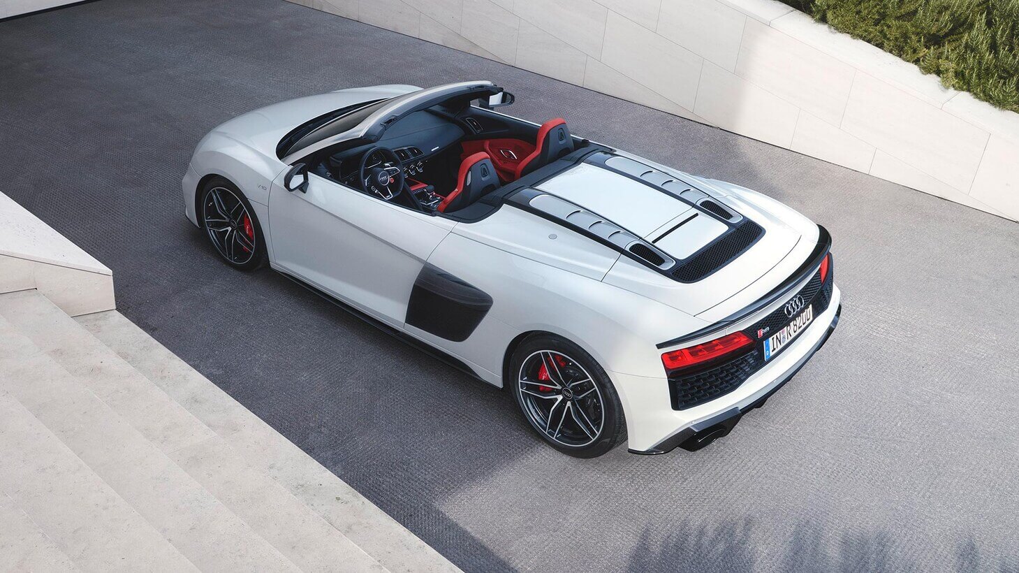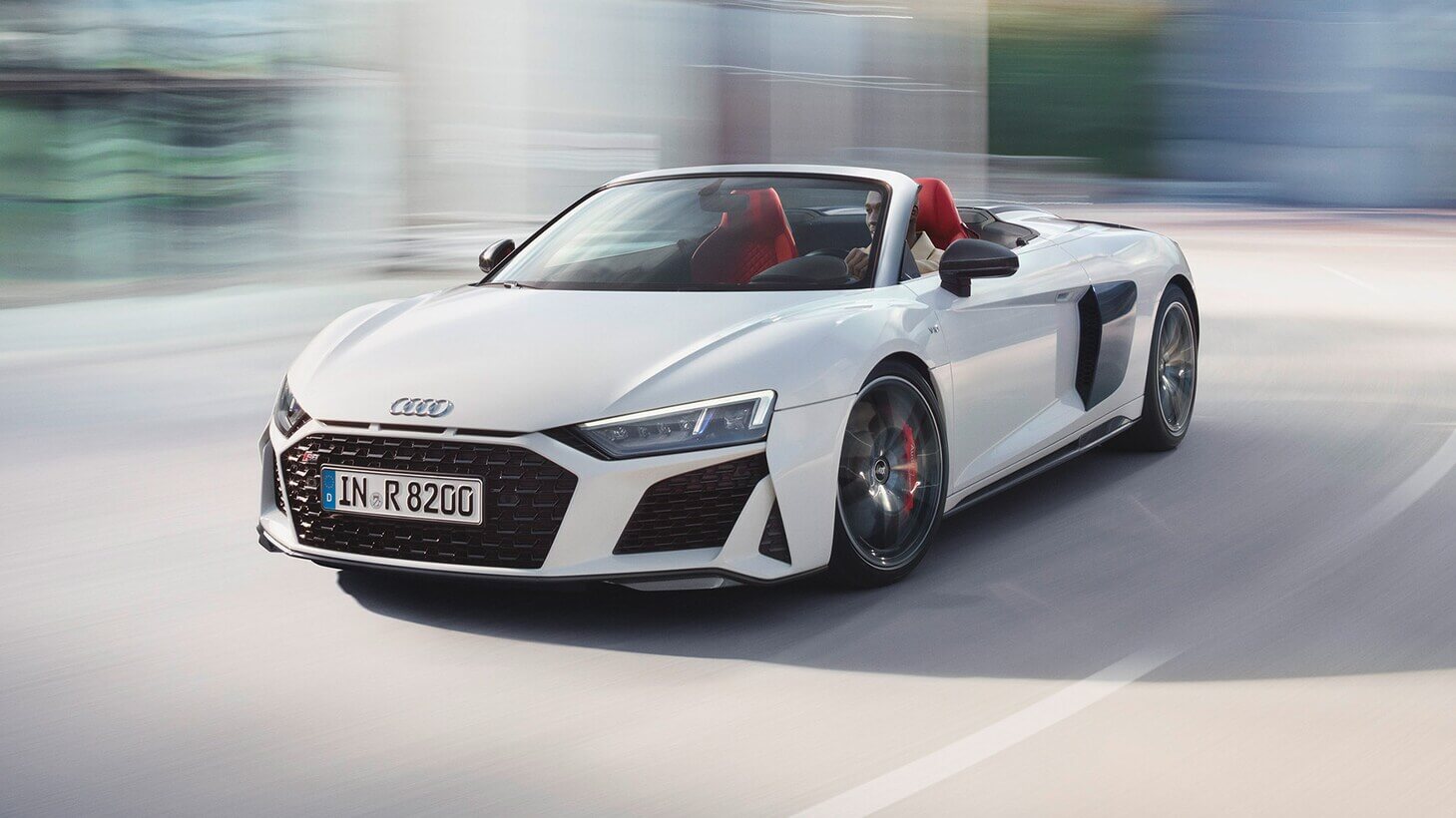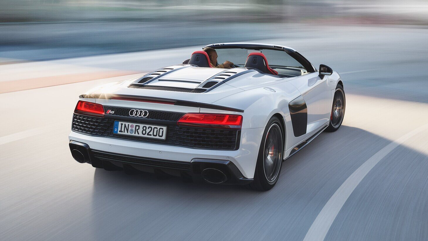 في قلب Audi R8 يوجد محرك V10 بسحب طبيعي للهواء يقع بين المحورين. وتوفّر الفئة performance 49 حصانًا إضافيًا - ليصل الإجمالي إلى 620 حصانًا. وهذا يقلّل من الوقت اللازم للوصول إلى سرعة 100 كم/س من 3.5 إلى 3.2 ثانية ويزيد السّرعة القصوى بمقدار 7 كم/س، من 322 إلى 329 كم/س. هناك أيضًا فرق واضح في عزم الدّوران: إذ يمكن الوصول إلى 580 نيوتن متر عند 6500 دورة في الدّقيقة. يُرسل الجناح الخلفي لسيارة R8 Spyder V10 Performance quattro المصنوع من البوليمر المقوّى بألياف الكربون إشارةً واضحة من الخارج على الأداء المذهل لهذا المحرك.