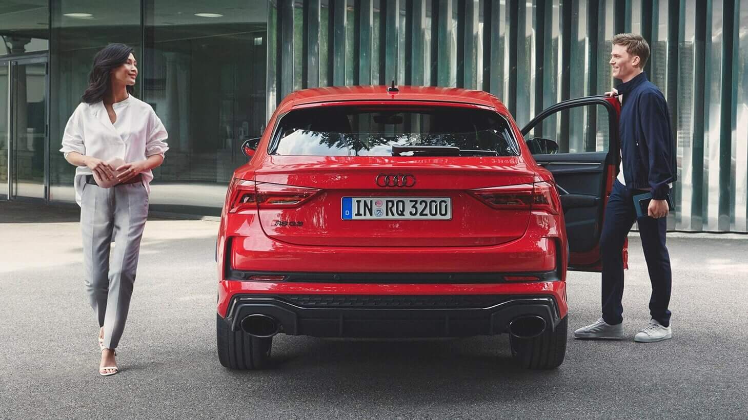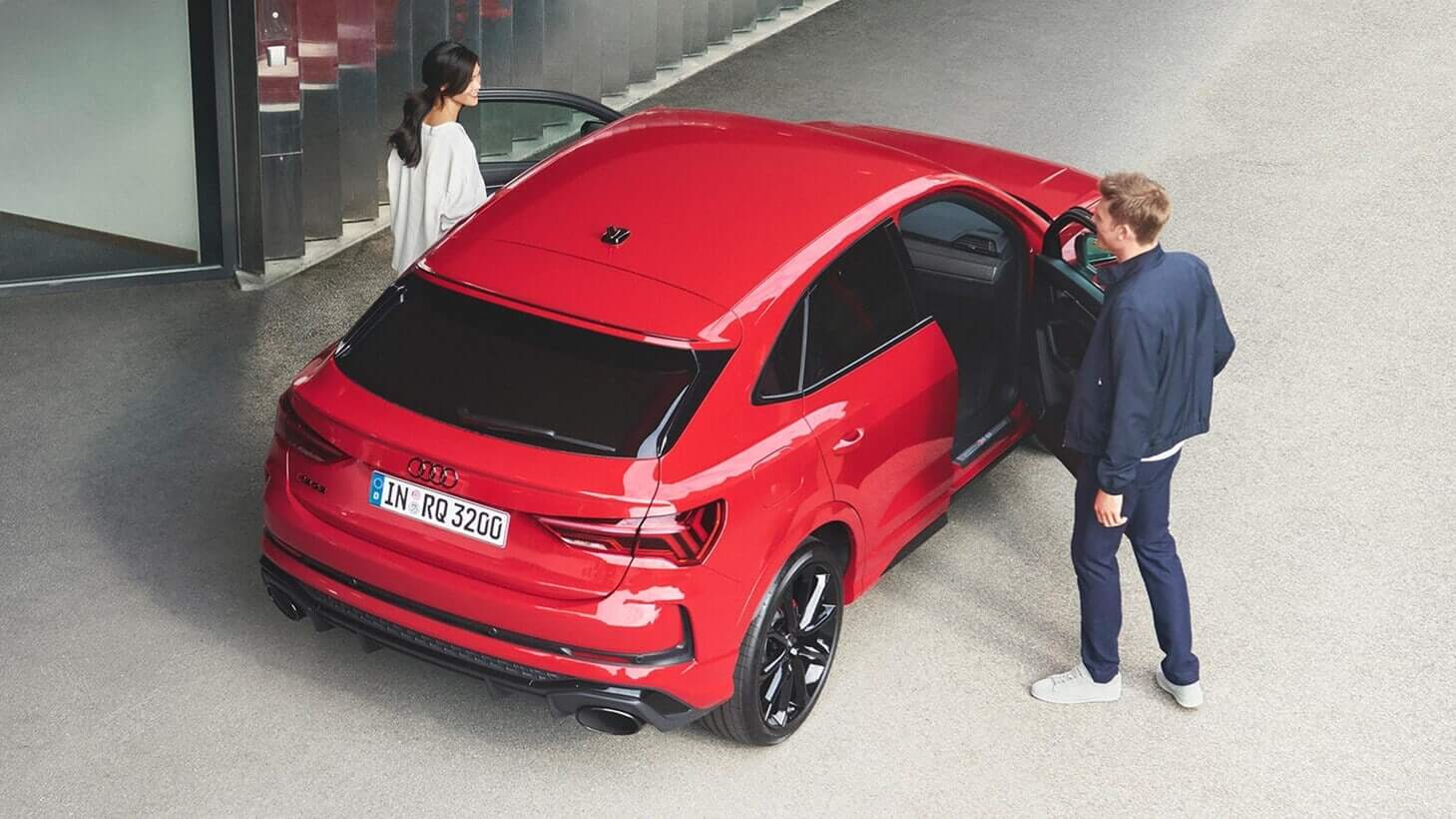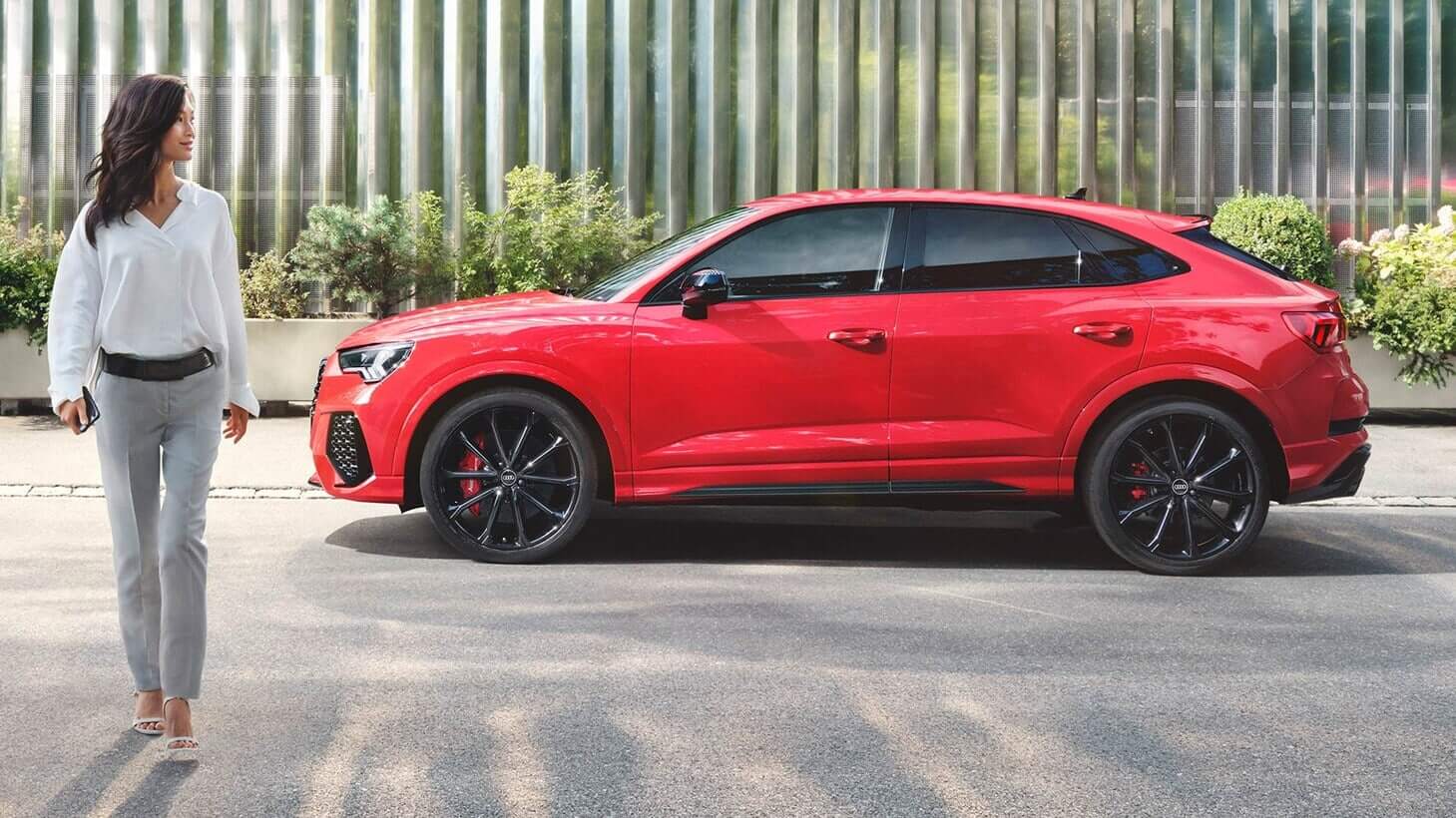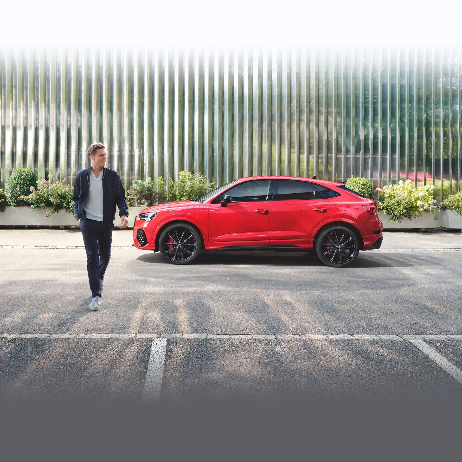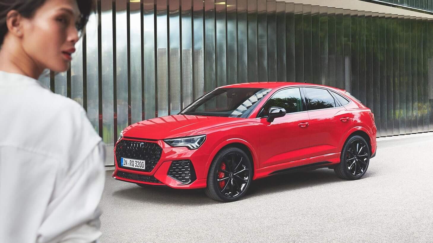 يمكن التعرف على قوة أداء Audi RS Q3 Sportback فوراً عند رؤيتها. يضفي الجزء الخلفي لمسة نهائية قوية بفضل المصد الخاص بـ RS مع ناشر خلفي وشفرات أفقية باللون الأسود اللامع مع الجناح الخاص بـ RS. في المقدمة، يبرز ممتص الصدمات RS مع الإطار الأحادي الأسود اللامع. أقواس العجلات المكشوفة والعجلات المعدنية مقاس 21 بوصة غير تقليدية لفئة الطراز هذا.