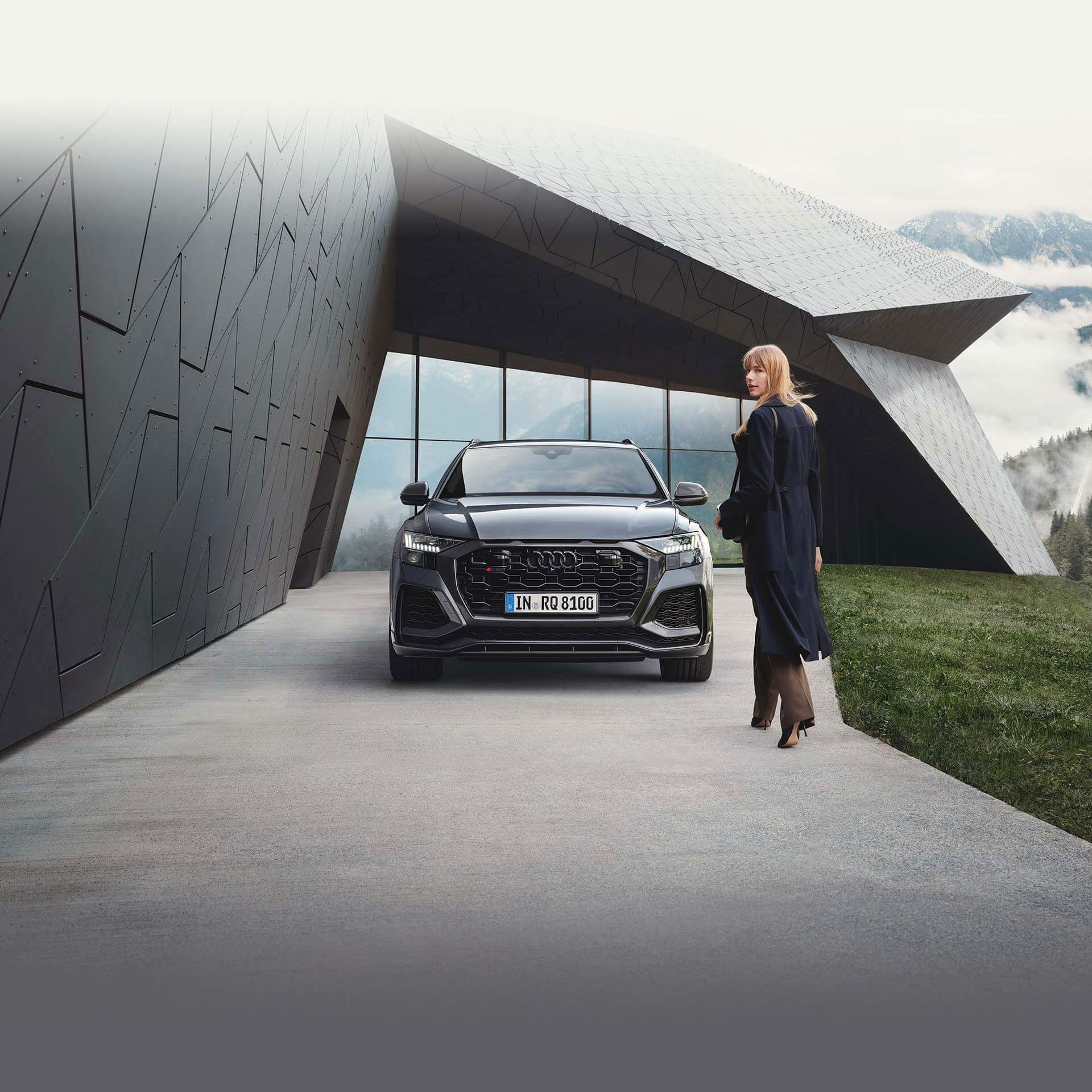 تجذب العناصر الخاصة بـ RS الانتباه إلى الشخصية الرياضية لمركبة Audi RS Q8. الخلفية الجريئة للمركبة معزز من خلال موزع الناشر الأسود اللامع الخاص بـ RS، وأنابيب بتصميم RS البيضاوي، وجناح حافة سقف RS. تم تعزيز الهيكل القوي من خلال خط السقف المنحدر إلى الخلف، وأقواس العجلات الموسعة وعتبة RS. كما تضيف مصدات RS الديناميكية مع شبكات المبرد بتصميم Honeycomb، مآخذ الهواء الكبيرة، الجناح الأمامي وقناع الإطارالاحادي من الكربون لمسات جمالية مثيرة للإعجاب.