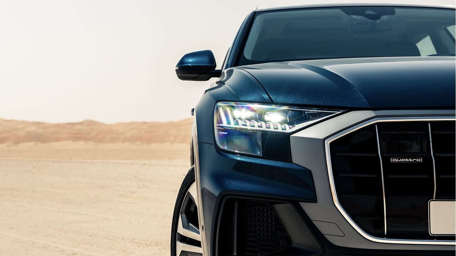 مع تصميم مميز ثماني الأضلع لشبكة التهوية مفردة الإطار، تُعتبر Audi Q8 الوجه الجديد لعائلة Q. حيث تهيمن شبكة التهوية القوية على مقدمة المركبة، وتتكامل مع الجناح الأمامي الذي تم نحته نحو الأعلى، ومنافذ الهواء الكبيرة ذات الخطوط العالية، لتؤكد على الشخصية الواثقة للمركبة.
