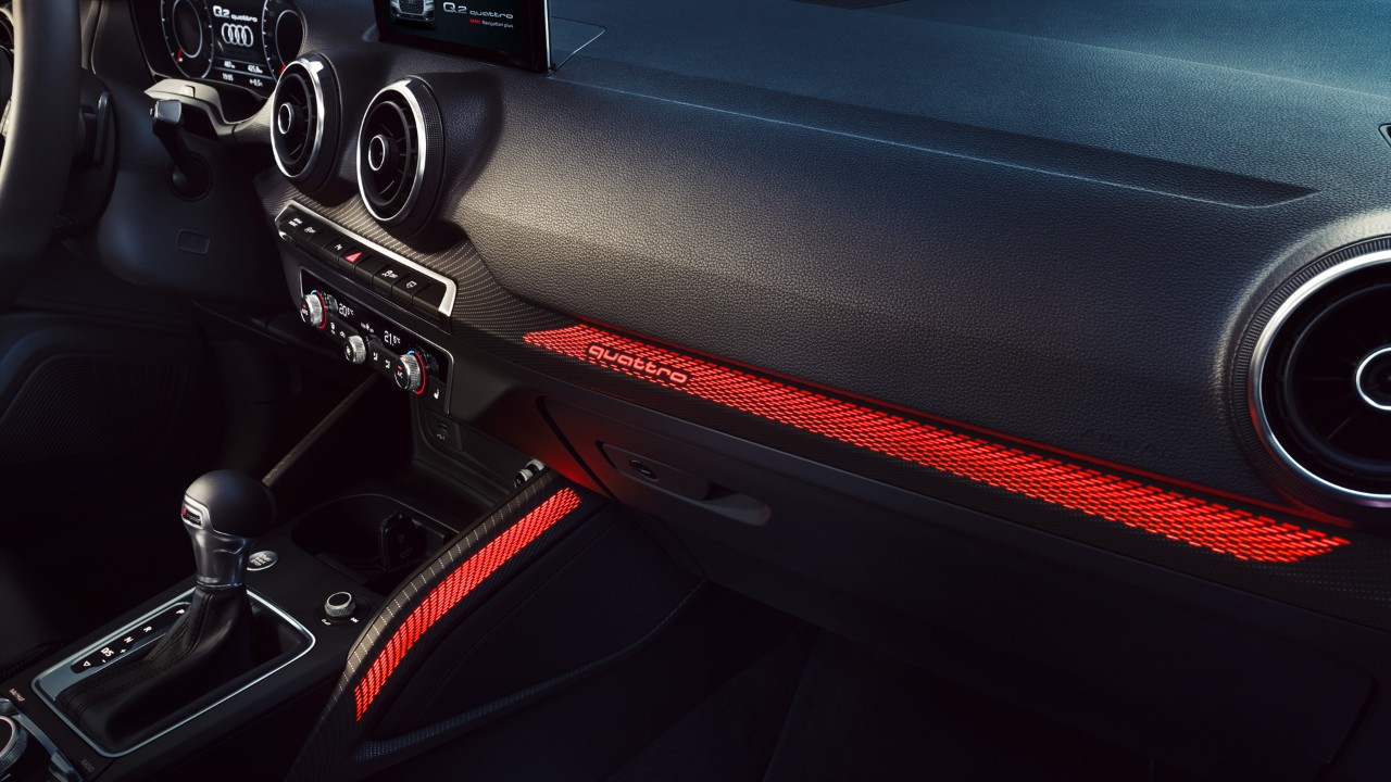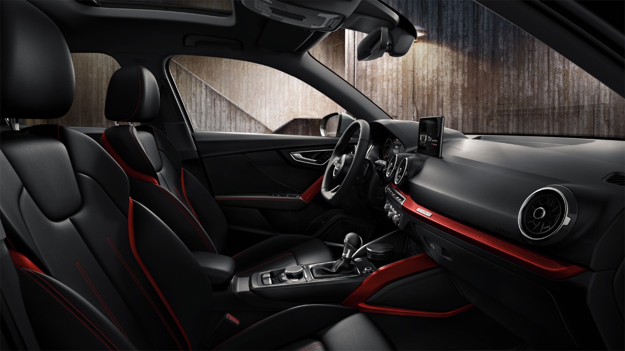 يأخذك برنامج اختيار التصميم إلى آفاق من الخيارات الجذابة ذات الجودة الفائقة، والمواد الأنيقة والألوان الساحرة. وتتضمن المجموعة الاختيارية لـ Q2 في نموذج التصميم طرازات تشمل من بين الأشياء الأخرى، التطعيمات التزيينية من الألمنيوم المصقول غير اللامع، والمقاعد الرياضية ذات الوصلات المتباينة باللون البني أماريتو، وعجلة قيادة مكسوة بالجلد متعددة الوظائف بتصميم ثلاثي الأضلاع.