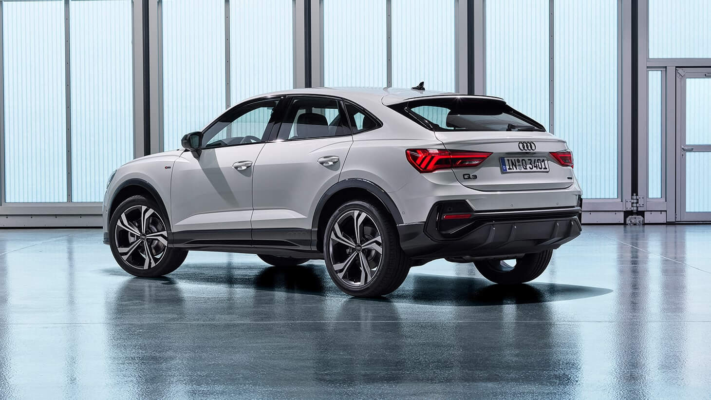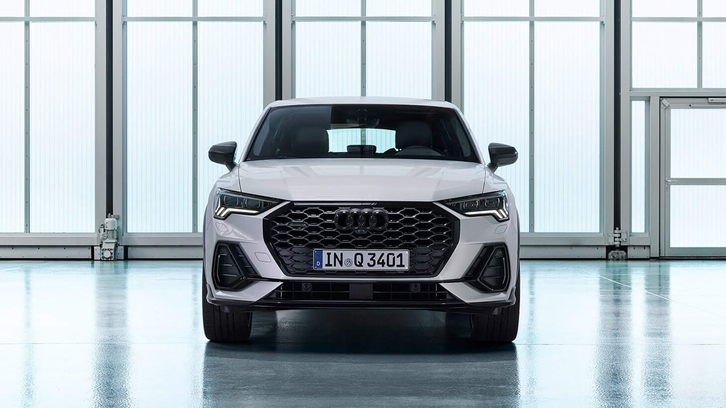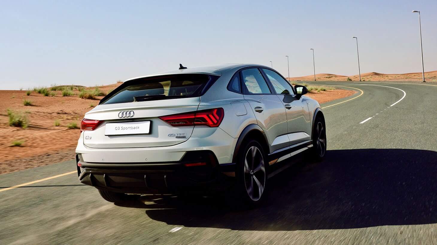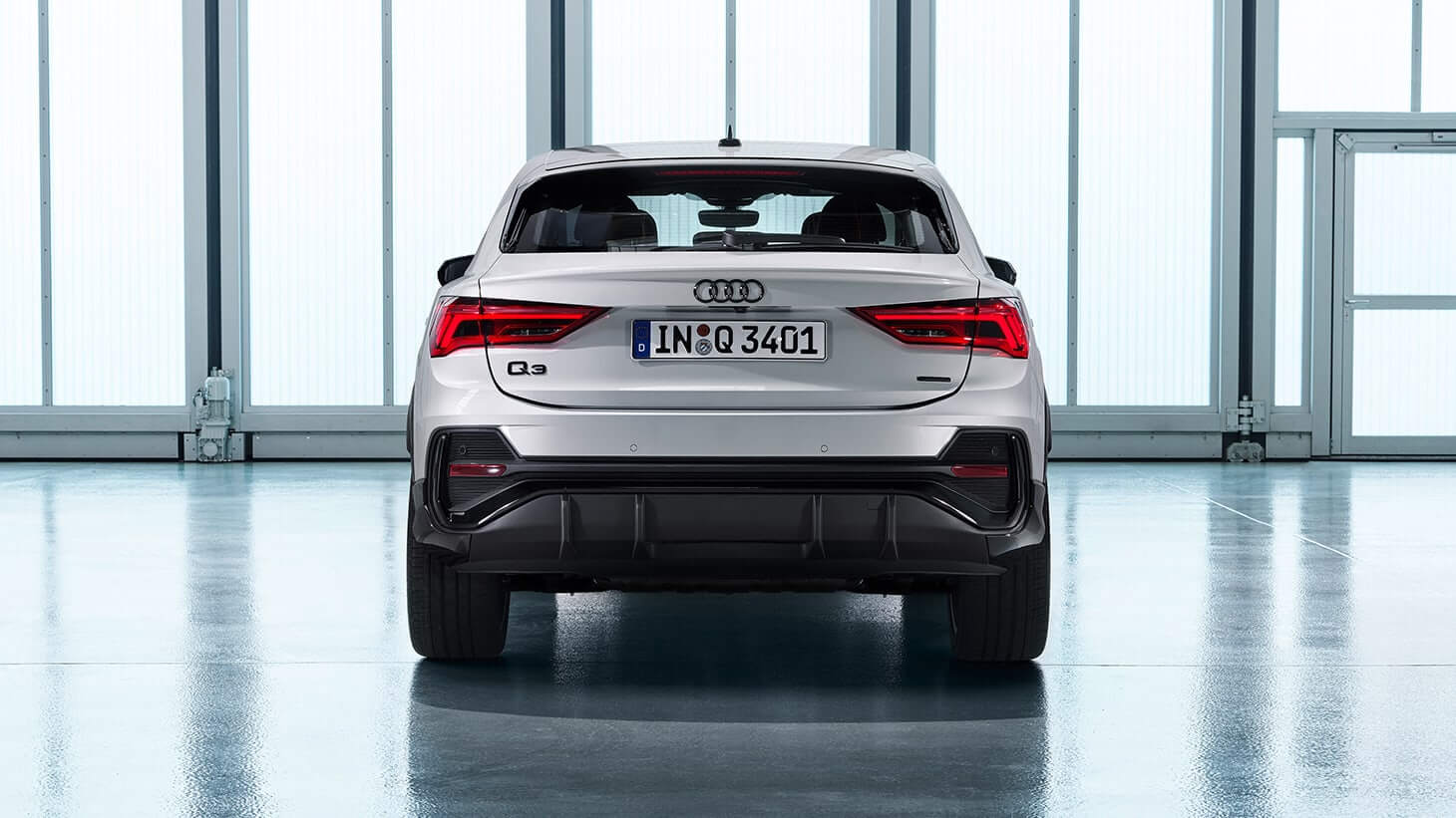 يمكن وصف سيارة Audi Q3 Sportback بأنها واثقة، منفتحة، ورياضية. يسيطرعلى الواجهة الأمامية تصميم الإطار المنفرد الكبير مع التصميم المثمن ومآخذ الهواء الجانبية. إن خط الكتف الطويل والأنيق وخط السقف المنحدر والنافذة الخلفية المنخفضة والأضواء الخلفية حادة التصميم تؤكد على طابعها الرياضي. صُمم المظهر الخارجي من خلال حزمة التجهيزات المرنة. إذا اخترت حزمة S line، فسيتم توفير Audi Q3 Sportback الخاصة بك مع مصدات ذو طلاء متباين، وعجلات 18 بوصة بتصميم 5 V البارز، وعتبات الأبواب المضيئة مع إدراج الألمنيوم الأمامي وحرف S.