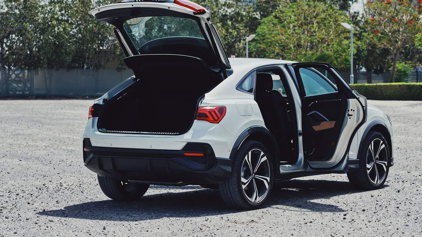 تتميز Audi Q3 Sportback بتصميم داخلي متكيفة للغاية. يوفر المقعد الخلفي مساحة لثلاثة أشخاص ويمكن أن يميل في سبعة أوضاع. يتراوح حجم صندوق الأمتعة بين 530 و 1400 لتر. الباب الخلفي الكهربائي يمكن فتحه بنظام الدخول السهل كتجهيز اختياري.