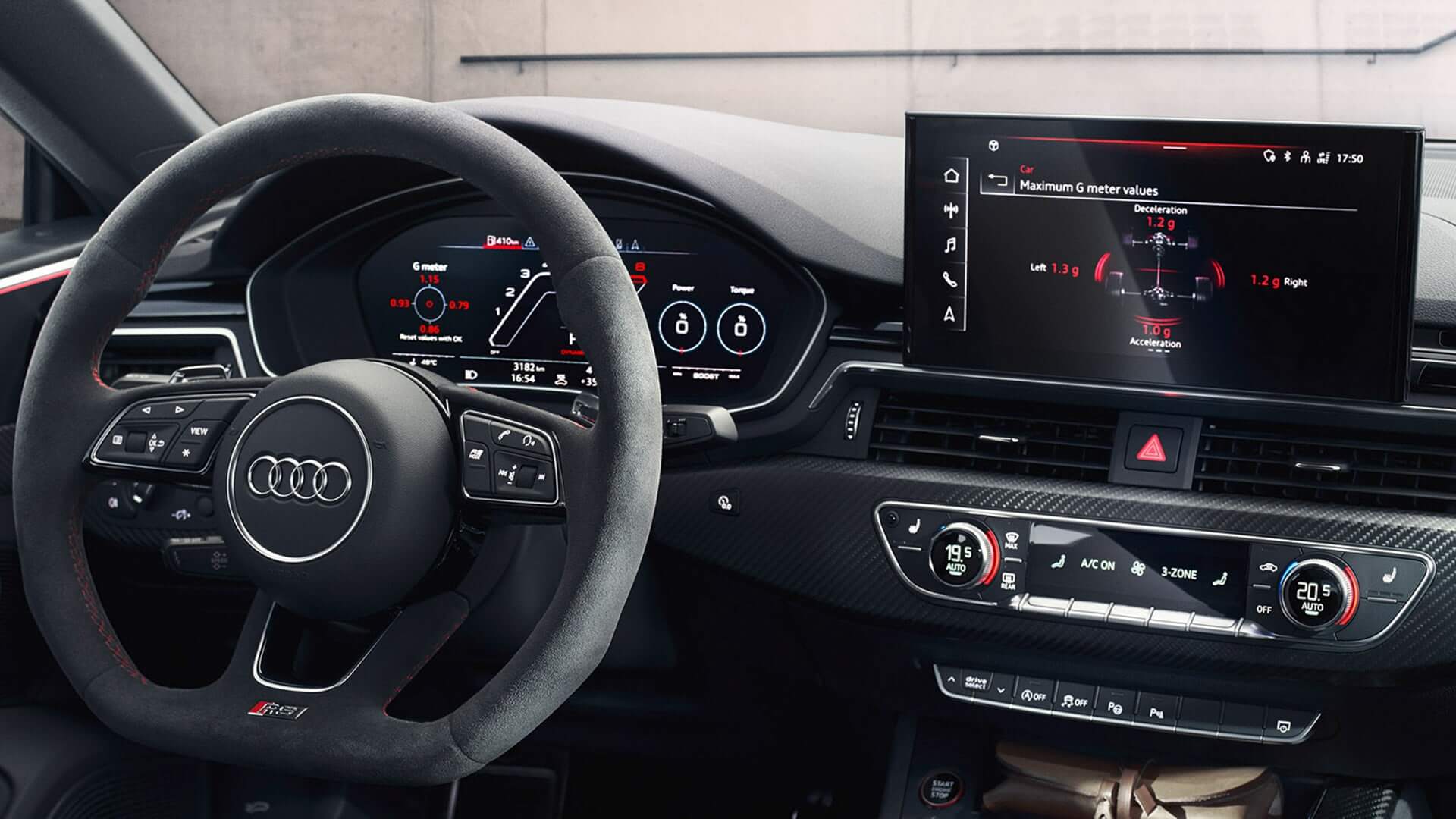 يضمن نظام الدفع الرباعي الدائم quattro مع الترس التفاضلي الرياضي الاختياري وعلبة التروس ثمانية السرعات تيبترونيك انطلاقات سريعة وواثقة. ويمكنك تخصيص تجربة القيادة الخاصة بك عبر ضبط التوجيه الديناميكي ضمن نظام أودي لاختيار أسلوب القيادة. بينما يتيح نظام التعليق الرياضي القياسي RS أداءً أفضل يجعل سيارتك تعانق الطريق. ويمكن رفع أداء الانعطافات الديناميكية والثبات الاتجاهي بفضل نظام التعليق الرياضي RS الاختياري ونظام التحكم الديناميكي بالقيادة (DRC).