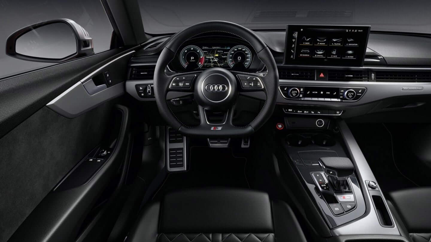 تمتد الأناقة الرياضية للمركبة إلى المقصورة الداخلية بفضل العناصر الخاصة بـخط تصميم S، كالمقاعد الرياضية الاختيارية S؛ وتطعيمات الألومنيوم المصقول والغير لامع القياسية؛ وعجلة القيادة متعددة الوظائف بلاس ثلاثية العوارض والمكسوة بالجلد مع شعار S وتطريز بلون مغاير. كما تشكل العناصر الأفقية والمواد عالية الجودة إحساسًا بالرحابة مع منصة معلومات وترفيه متطورة يمكنك تخصيصها مع ملفات Audi الحصرية.
