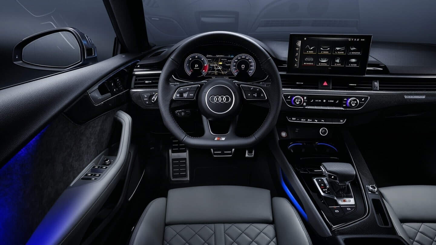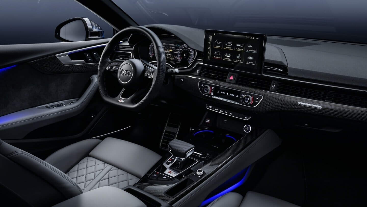 يمكن تشغيل وظائف مثل تقنية MMI navigation plus للملاحة الاختياري والإضافي بشكل بديهي على شاشة اللمس MMI مقاس 10.1 بوصة مع ملاحظات لمسية أو باستخدام أوامر الكلام الطبيعية. يتوفر أيضاً قمرة القيادة الافتراضية Audi plus والتي تعرض البيانات الرئيسية على شاشة عالية الدقة مقاس 12.3 بوصة. يضع التصميم الخاص بـ S عداد السيارة في المقدمة ويتخلص من التعقيد غير الضروري.